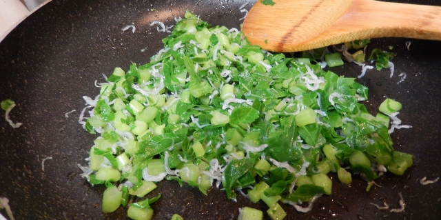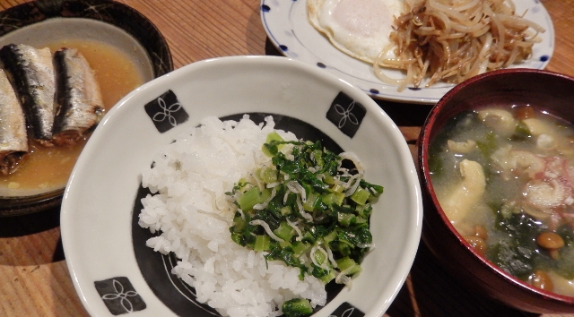 せっせと炒め煮にして、朝食に楽しんでいる。刻んでサッと茹で、ちりめんなどと共に胡麻油で炒め、味醂と醤油を少し。薄味でも胡麻の風味が香ばしく、新鮮な葉ならではのシャキシャキ感が何とも言えず、ご飯が進む。
