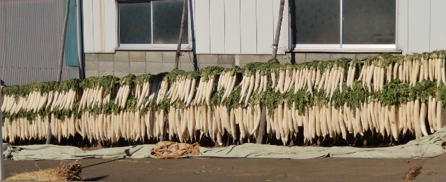 大根の村、明野。漬物用の干し大根。初冬の風物詩です。