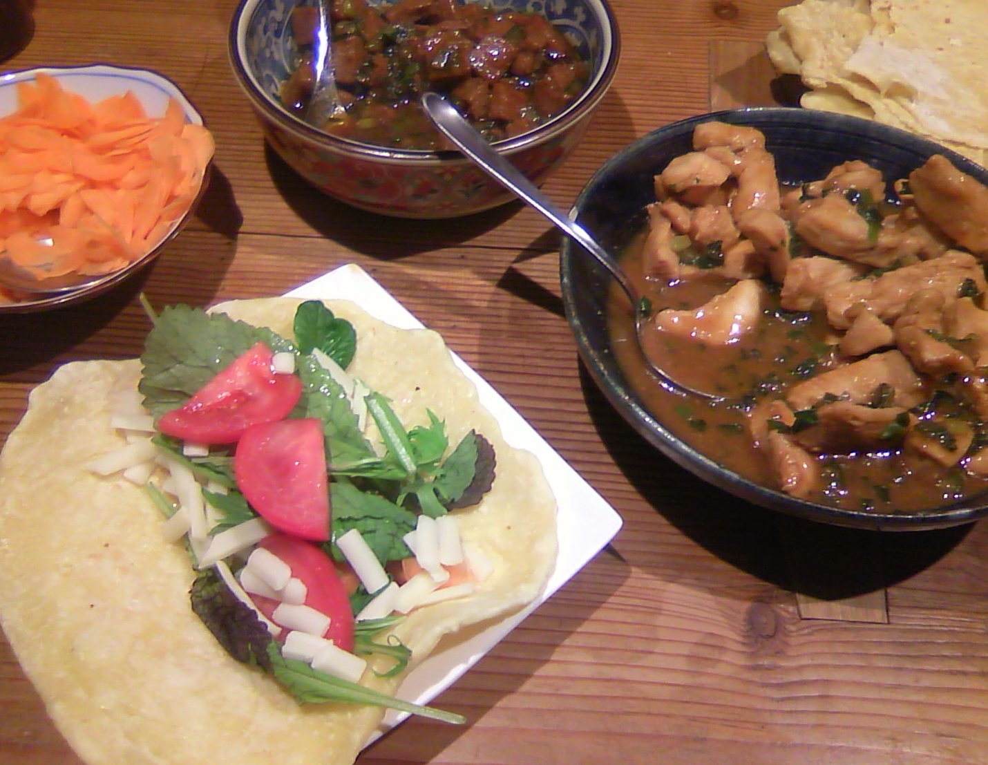 薄いパンに、肉や野菜をそれぞれ乗せて、巻くようにして食べるのだが、「ラップ」と呼ばれるナンを薄くしたようなパンは、山梨のスーパーでは見つからなかった。そこで肉と野菜をサムが、ラップパンを娘が作ることに。しかし、こねるまでは順調だったラップ作りが、薄く伸ばすところで難航した。