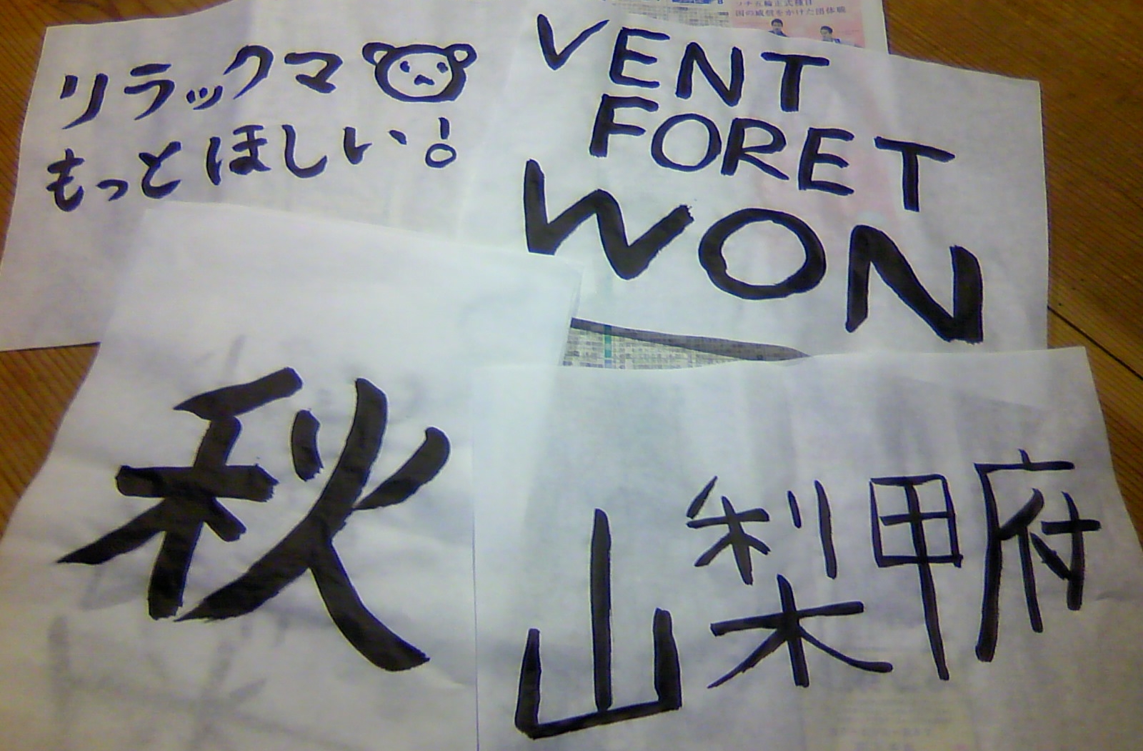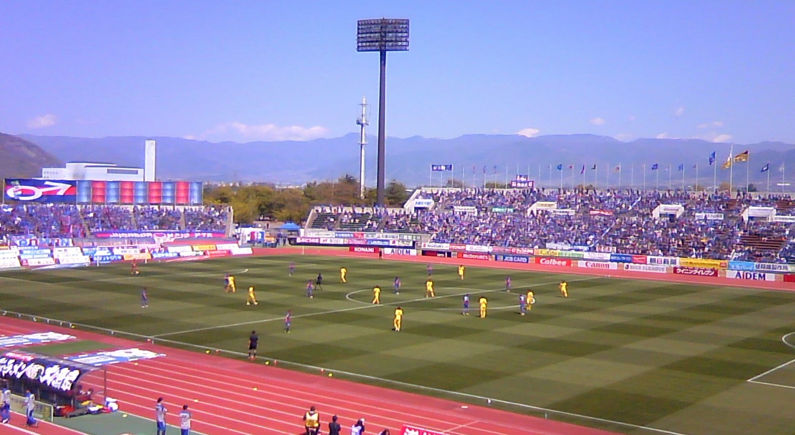 今期J1に昇格した甲府の試合をホームで観ようと、夫がサムと娘を誘い4人で出かけた。スタジアムの周囲は露店が並び、ヴァンフォーレカラーの濃いブルーとレイソルカラーの黄色を身にまとった人々が交錯している。田舎の祭りの趣きたっぷりの、のんびりした雰囲気を楽しんだ。