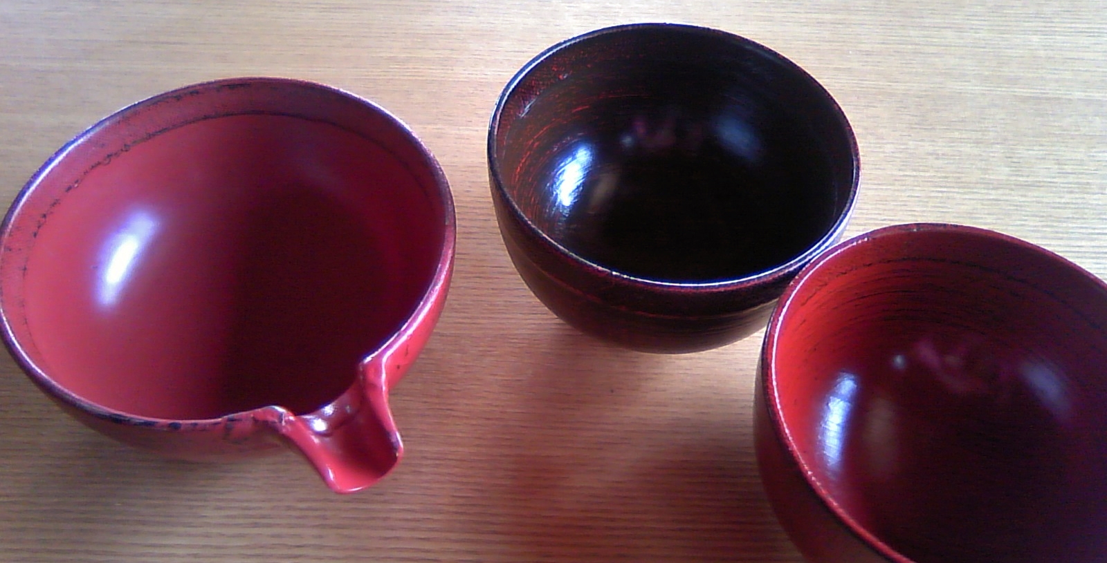 軽くて手ごろな大きさの漆塗りの片口は、いただきものです。