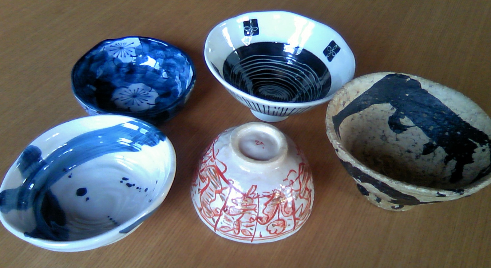 右側のごっつい茶碗は夫用。少し欠けていますが、気に入って使っています。