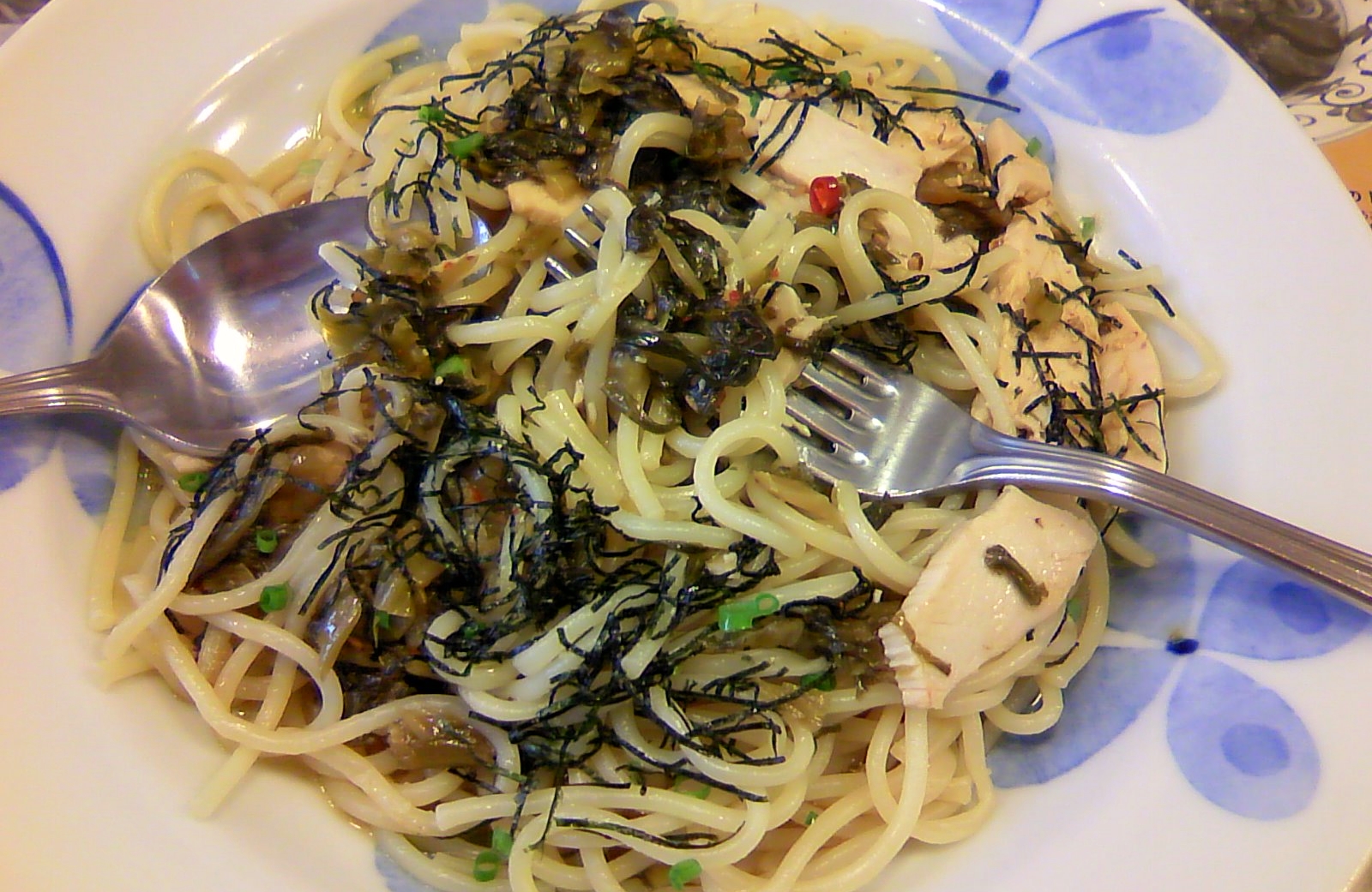 「あ、高菜」と思った瞬間にオーダーしていた。ランチのパスタ。高菜とチキンのピリ辛風味。たまに出会う高菜は懐かしさをまとい、わたしを誘惑する。