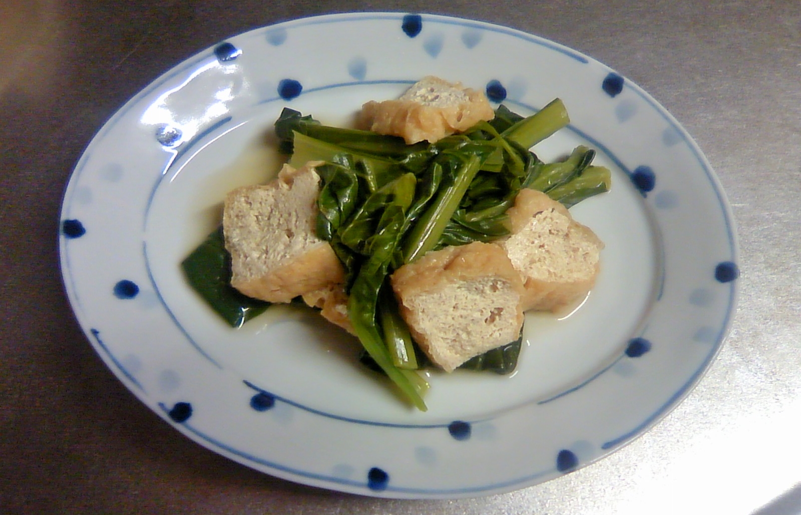 いただきものの栃尾のあぶらげを、小松菜と煮て。