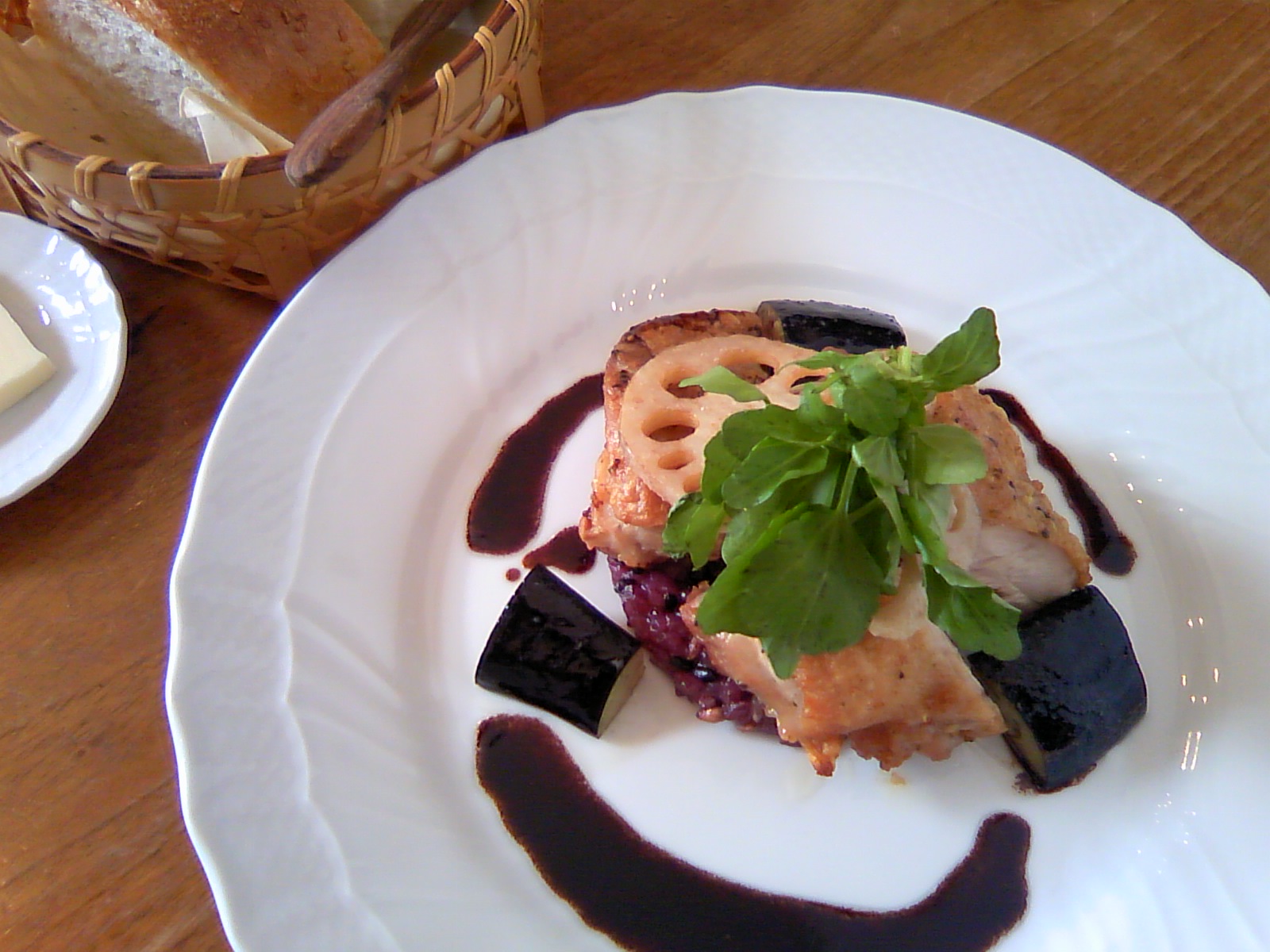 ディナーには、前菜の後に、赤ワインと。