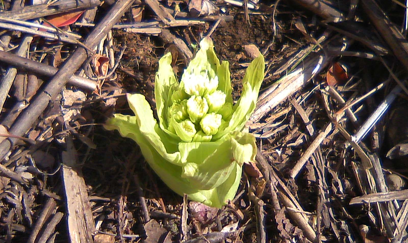 太陽を浴びて、気持ちよさそうに花開くふきのとう。