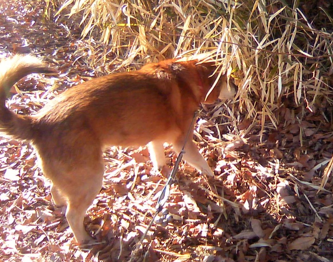 しかし翌日は、元気に散歩に出かけた。いつものペースでいつもの道を歩く。枯れた笹の匂いを十分に確かめ、考え、思い巡らすびっきー。急かすことなく、びっきーの調子に合わせ、それでもタイムログはそんなになかった。