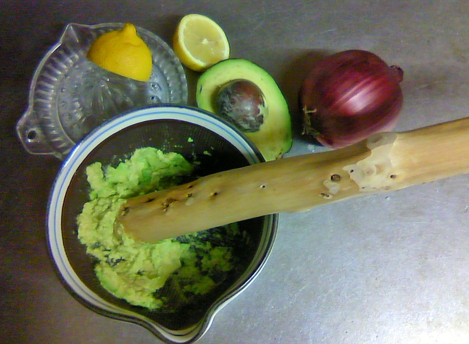 山梨春の市、十日市場で買ったすりこぎでアボカドを磨り潰した。