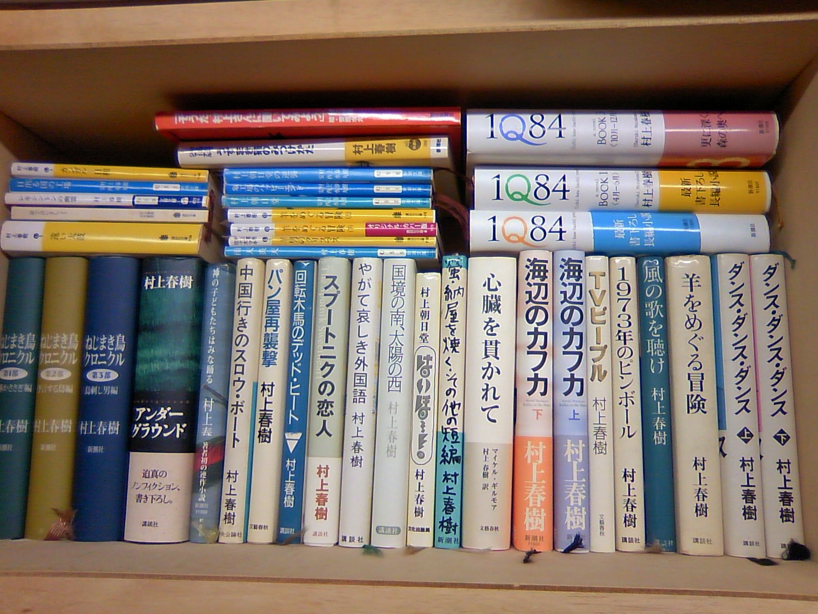 村上春樹コーナー。『ノルウェイの森』は友人に20年の約束で貸し出し中。