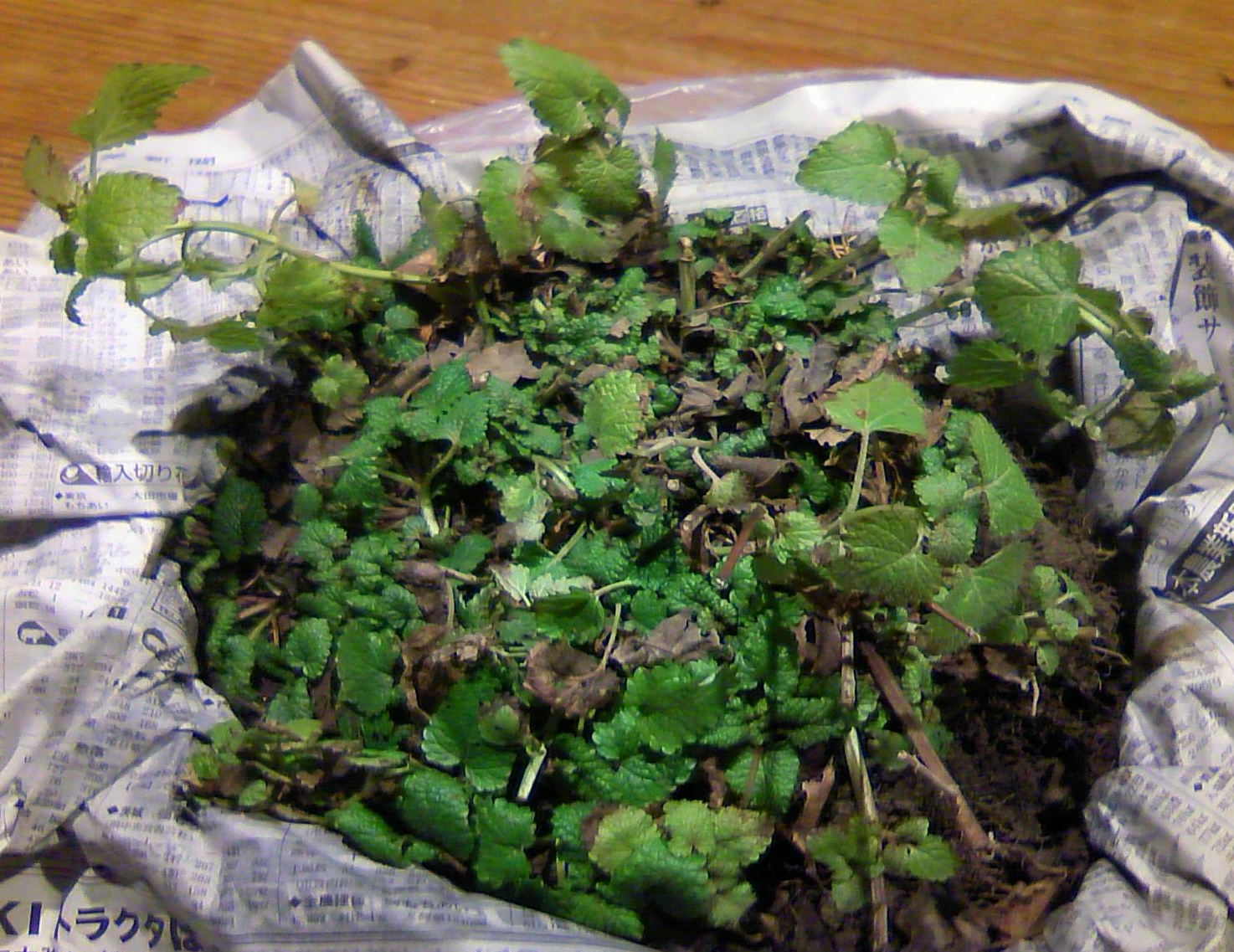 「レモンバームは悲しみを追い出すハーブ」だというわたしのブログを読み、新芽を庭の落ち葉の下から探しだし送ってくれたのだ。