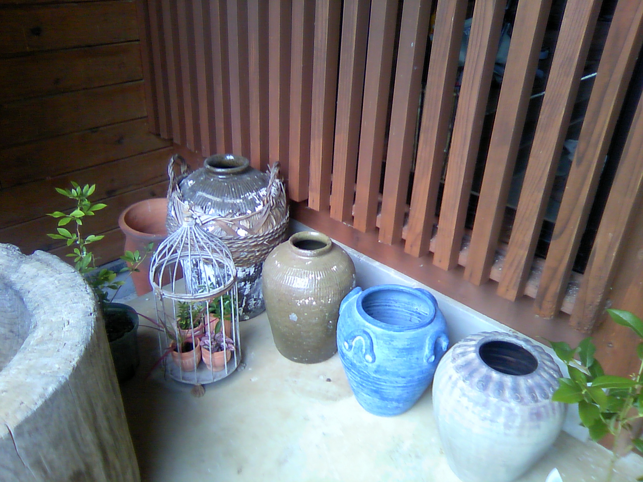 きれいになった玄関 なぜか臼やら壺が並んでいる