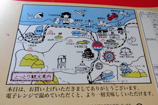 鳥取の観光案内が包みの裏側に載っていました。行ってみたいな。