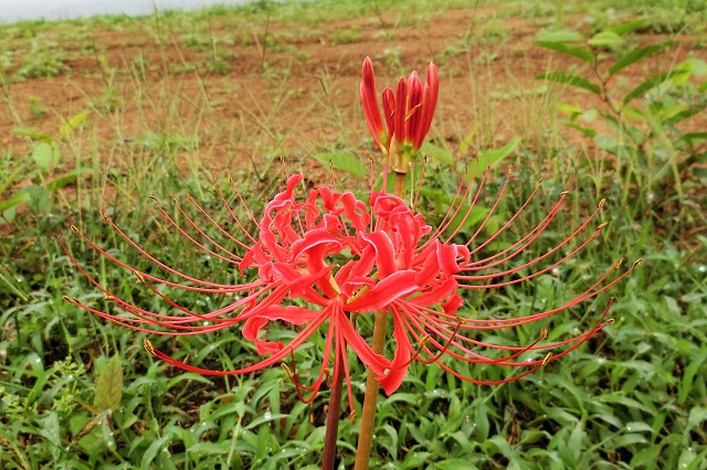 田んぼの畦には、あちらこちらに彼岸花が咲き始めました。
