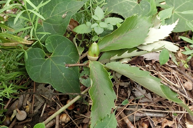 隣りの林は、どんぐりだらけ。クヌギ林ですから。