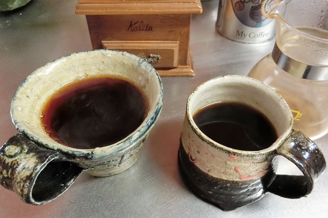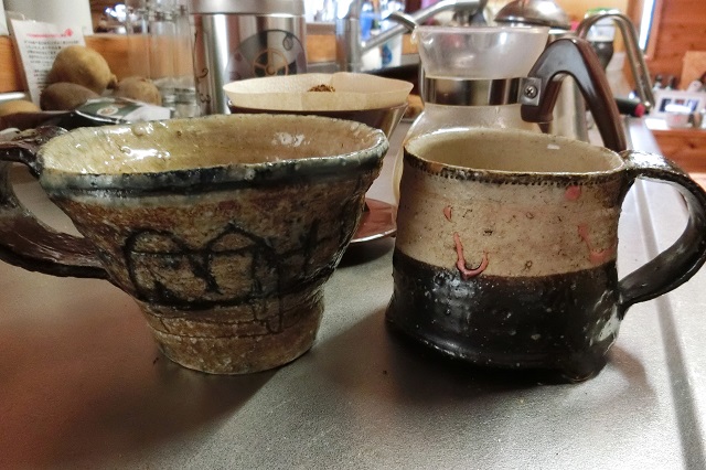 たまには違うカップにしようかな。右のカップは、何年か前の誕生日に、