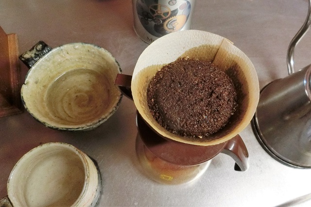 煎りたて挽きたての珈琲は、膨らむなあ。いい香り。