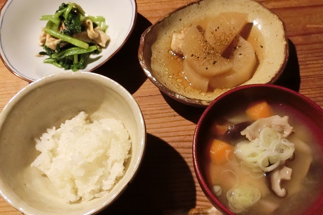 豆腐と油揚げの味噌汁も大豆大豆そのうえ味噌も大豆だけど違和感なし。
