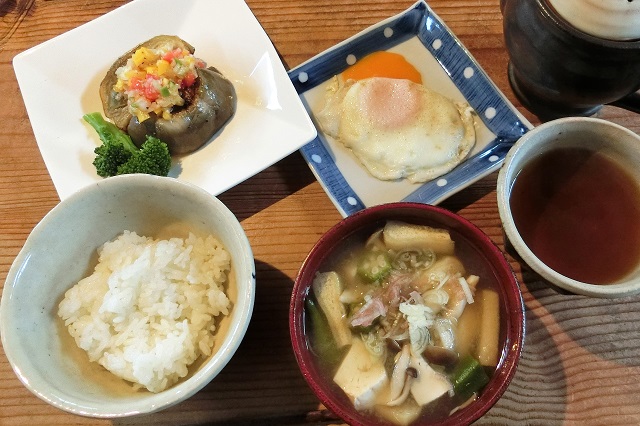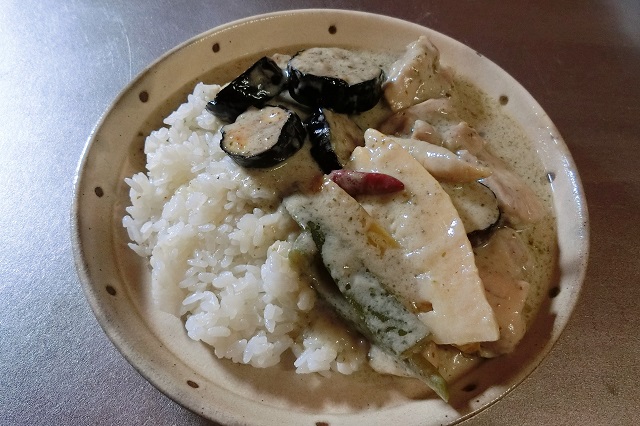 こちらは、きのうのグリーンカレーに茄子をプラスしたもの。