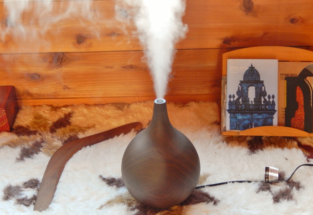 木製の丸いものを選びました。加湿器もデザイン豊富になりましたね。